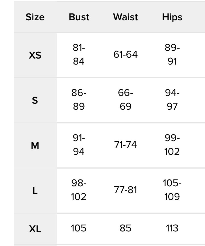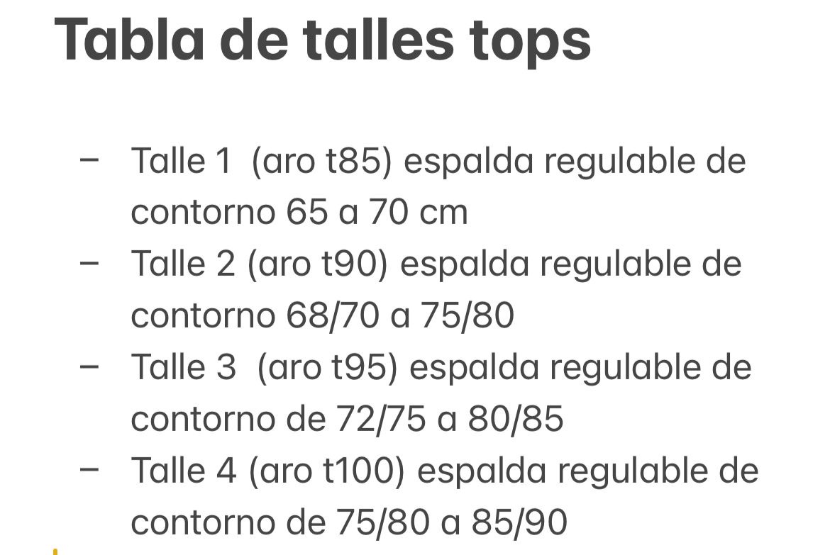 Tabla de talles de corsets y tops